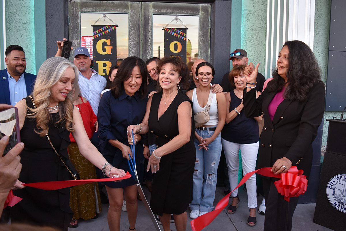 Carmelita’s Mar y Tierra servirá a la comunidad hispana del este de Las Vegas. En la foto, el instante del corte simbólico de apertura, la Chef, con raíces de la CDMX sostiene las tijeras junto a su sobrina y socia Sue Kiple. El jueves 29 de agosto de 2024 en el 2021 E. Charleston Boulevard. (Frank Alejandre / The Nevadan / El Nevadense)
