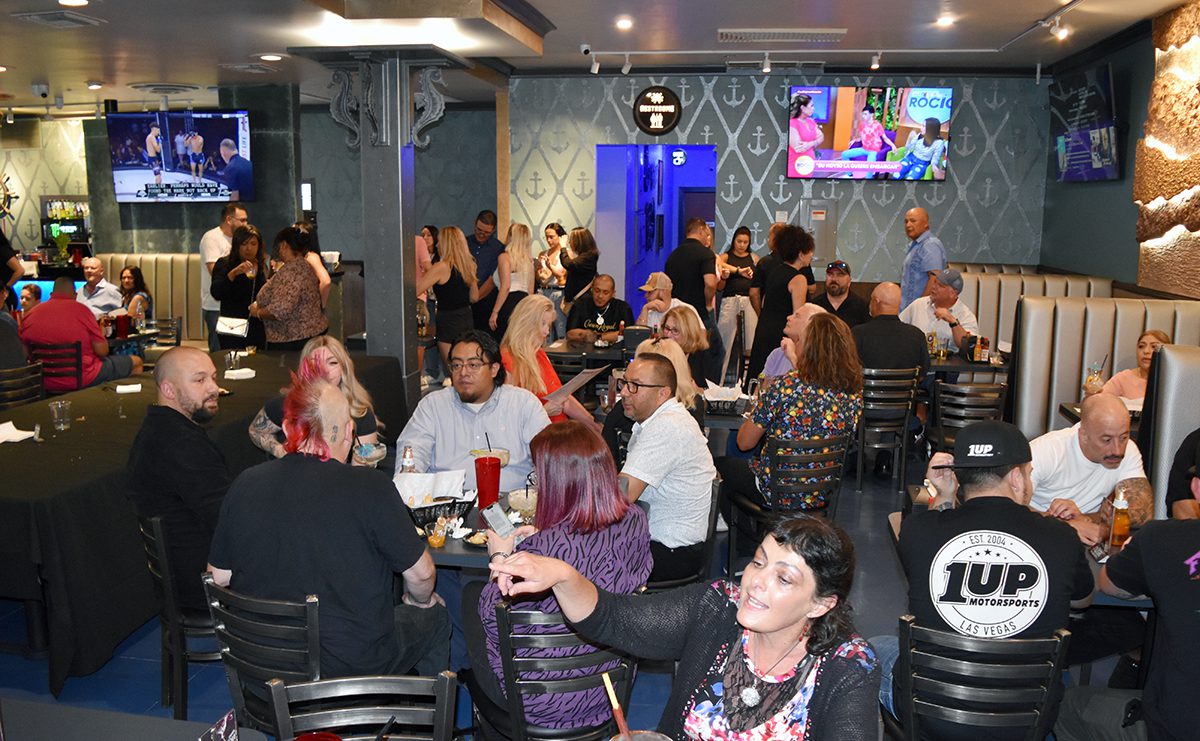 Carmelita’s Mar y Tierra servirá a la comunidad hispana del este de Las Vegas. En la apertura de dieron cita destacadas personalidades del medio local como Eddie Escobedo Jr. y Félix Fragoso -derecha-. El jueves 29 de agosto de 2024 en el 2021 E. Charleston Boulevard. (Frank Alejandre / The Nevadan / El Nevadense)