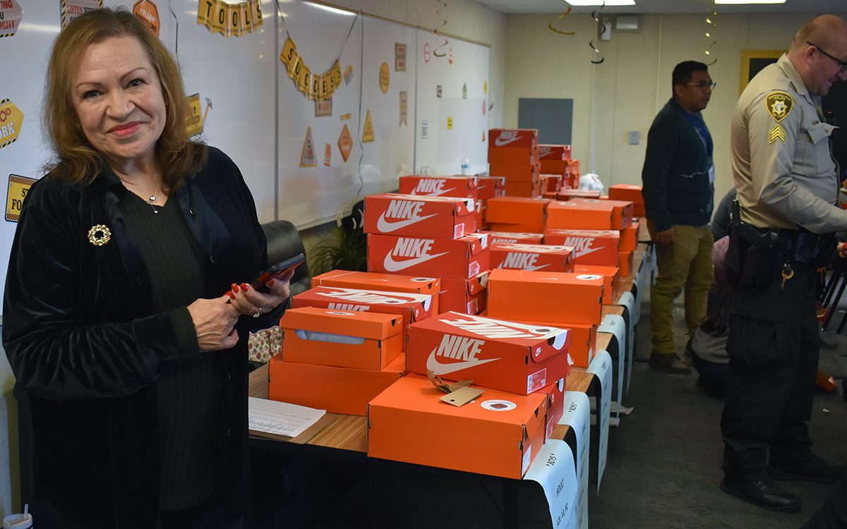 Amy Fass, consejera delegada y directora ejecutiva de Shoes That Fit trabajó de manera incansable con el comisionado Tick Sergerblom para que los niños de la escuela primaria Snyder recibieran zapatos tenis nuevos. El jueves 19 de diciembre de 2024 en el 4317 E Colorado Ave. (Frank Alejandre / The Nevadan / El Nevadense)