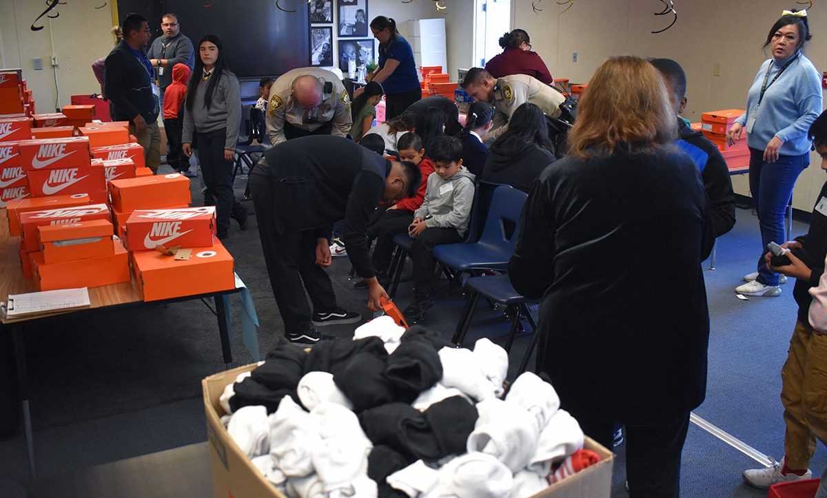Los alumnos de la escuela primaria Snyder recibieron tenis gratis de Shoes That Fit; fue un esfuerzo coordinado por el comisionado Tick Sergerblom. El jueves 19 de diciembre de 2024 en el 4317 E Colorado Ave. (Frank Alejandre / The Nevadan / El Nevadense)