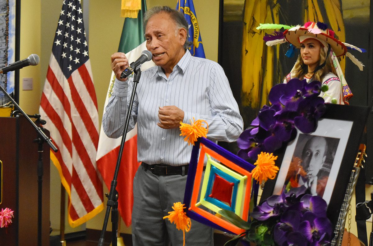 Amado Nervo vive en los que amamos la belleza de la vida, con sus luces y con sus sombras, dijo Augusto Lemus, durante la conmemoración del 154 aniversario del natalicio del poeta nayarita. El martes 27 de agosto en el Consulado de México en Las Vegas. (Frank Alejandre / The Nevadan / El Nevadense)