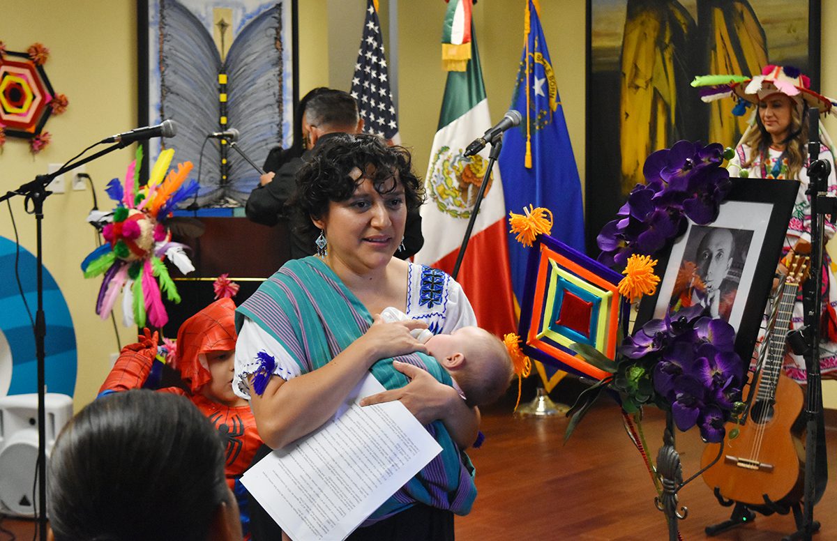“Muchas gracias por estar aquí. Mapy, te agradezco por haber elegido el consulado de México, para conmemorar el 154 aniversario del natalicio del poeta nayarita Amado Nervo; es gratificante saber que, además de excelente poeta, también fue diplomático. Además, celebro el poder de convocatoria que tienes, ya que es interesante saber que todo mundo quiere saber más sobre la vida y obra de Amado Nevo”, expresó Patricia Cortés Guadarrama, titular del consulado de México en Las Vegas, agregando “agradezco también a Maritza Rodríguez representante de la senadora Catherine Cortez Masto y a todos los representantes y miembros de la comunidad; les reitero que esta es su casa, estamos aquí por y para ustedes, para escucharlos y hacer posible la realización de eventos de ésta índole. Soy de Jalisco y muy cercana a los huicholes”.