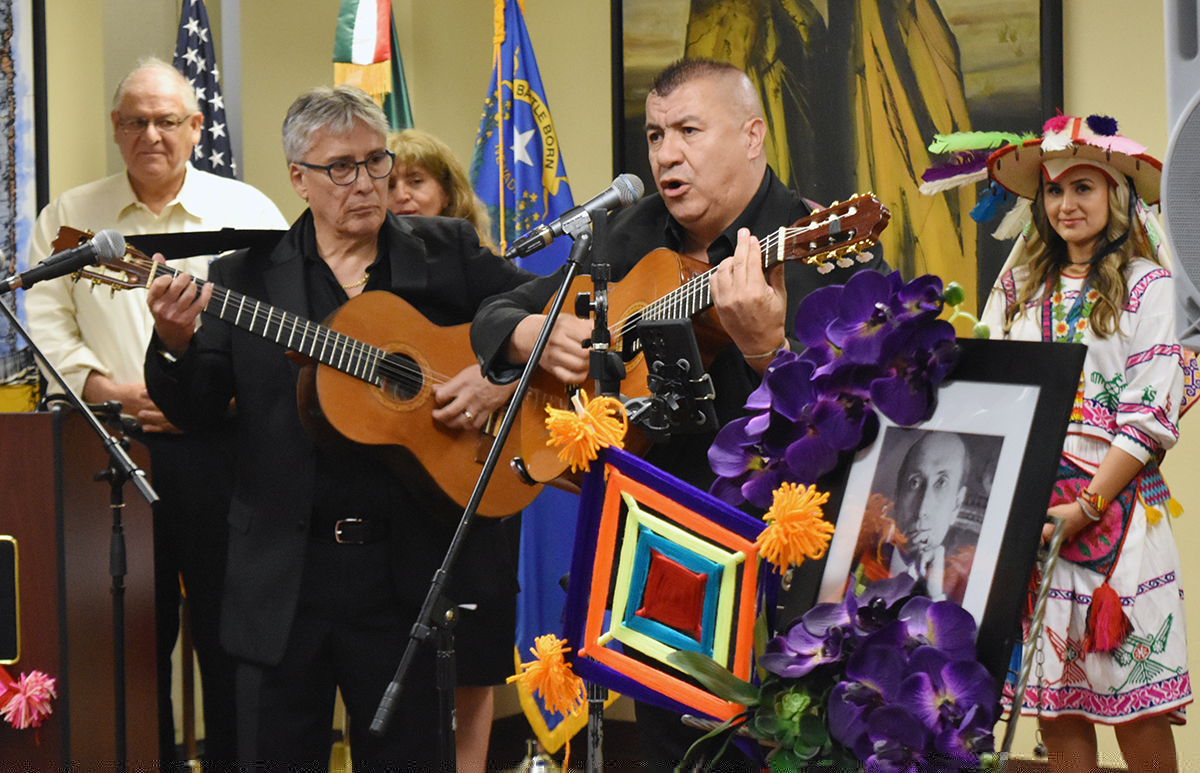 El Grupo Literario Comala organizó una celebración especial para recordar al autor de “¡Vida, nada me debes”! en el Consulado de México en Las Vegas. En la foto un extraordinario dueto uruguayo. El martes 27 de agosto en el Consulado de México en Las Vegas. (Frank Alejandre / The Nevadan / El Nevadense)