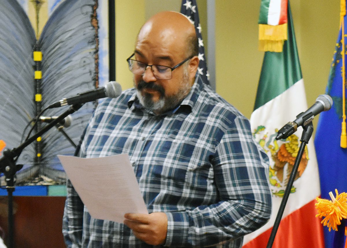 Remigio Favela leyó “El Día que me Quieras”. El martes 27 de agosto en el Consulado de México en Las Vegas. (Frank Alejandre / The Nevadan / El Nevadense)