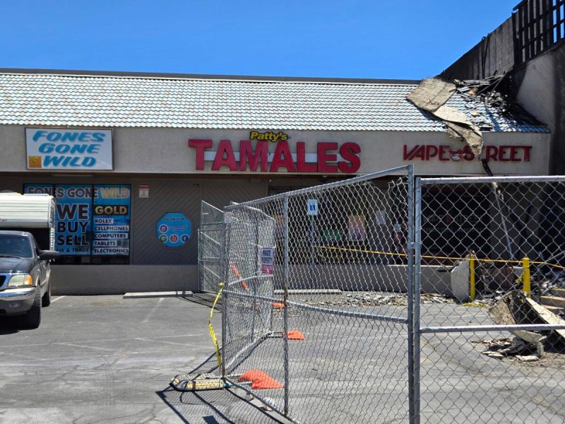Una columna de humo negro que parecía venir de los alrededores del campus de UNLV, podía verse alrededor del valle de Las Vegas poco después de las 8 a.m. del 26 de julio. Minutos más tarde, más de cien bomberos respondieron al incendio en el centro comercial University Gardens, donde las llamas salían por el techo y el frente del edificio de dos pisos.