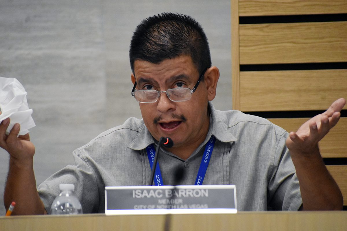 El Distrito B cubre la parte norte del valle de Las Vegas, Mesquite, el valle de Moapa y la Base de la Fuerza Aérea Nellis. Con el puesto ahora vacío y dos meses hasta que se elija un nuevo administrador en las elecciones, el administrador designado Isaac Barrón, un concejal de North Las Vegas, planteó la posibilidad de retrasar el cronograma del superintendente hasta que haya representación completa en la junta.