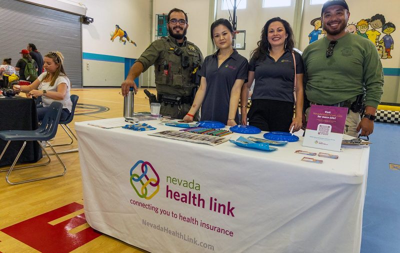NevadaHealthLink.com es el único lugar donde los nevadenses pueden solicitar asistencia financiera federal para reducir sus primas mensuales de seguro médico. En la foto, personal de la entidad asiste y responde a preguntas de la gente durante un evento que aconteció recientemente en el Centro Comunitario del Este de Las Vegas. (Foto Digiman Studio, vía Alex Manríquez)