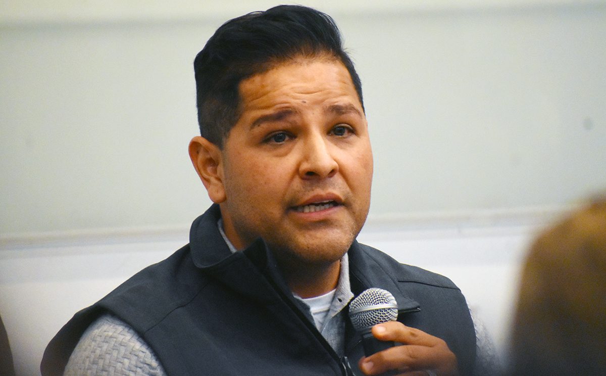 Defensores de la comunidad migrante y activistas rechazaron las órdenes ejecutivas relacionadas con la inmigración del presidente Donald Trump. En la foto, el subsecretario de estado en el sur de Nevada, Rubén Rodríguez. El miércoles 22 de enero de 2025 en la sede de la Fundación Casa del Inmigrante, que se localiza dentro del centro comunitario Rafael Rivera. (Frank Alejandre / The Nevadan / El Nevadense)