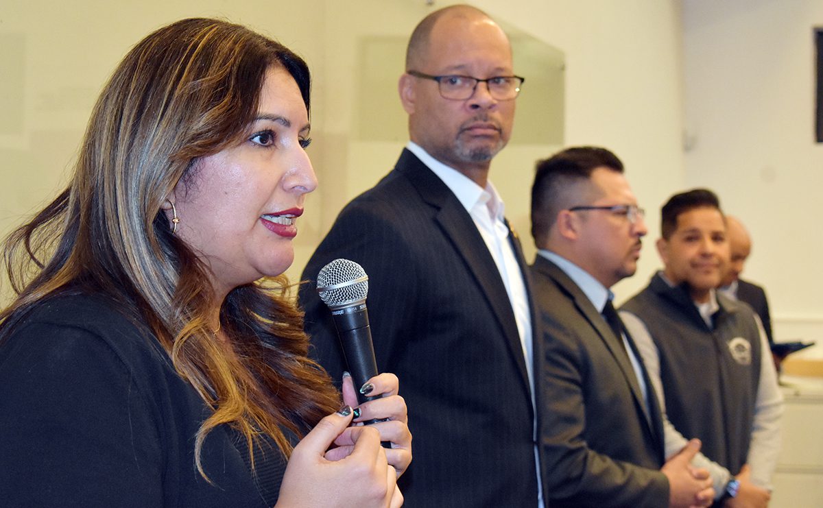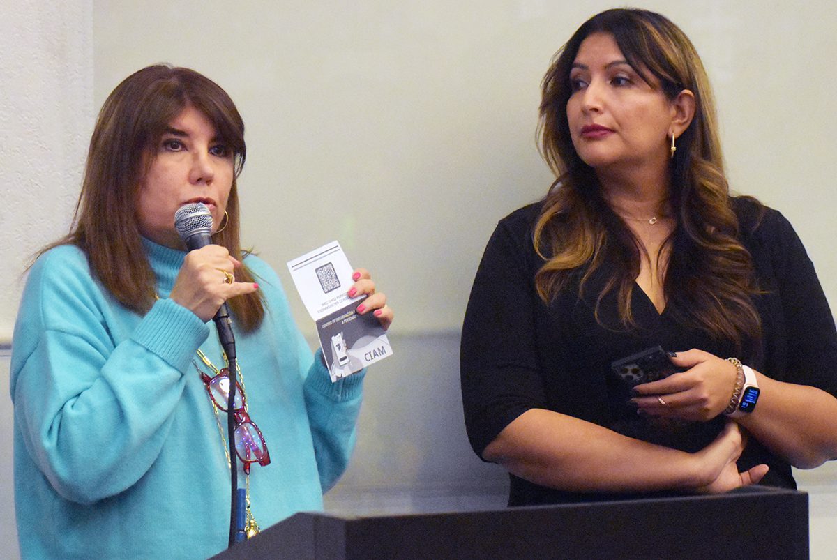 La asambleísta por el Distrito 11, Cinthia Moore, se dio a la tarea de movilizar a la comunidad latina residente en el este de la ciudad, con el objetivo de disipar dudas y ofrecer información -basada en hechos- sobre las órdenes ejecutivas recién firmadas por el presidente Trump. El miércoles 22 de enero de 2025 en la sede de la Fundación Casa del Inmigrante, que se localiza dentro del centro comunitario Rafael Rivera. (Frank Alejandre / The Nevadan / El Nevadense)