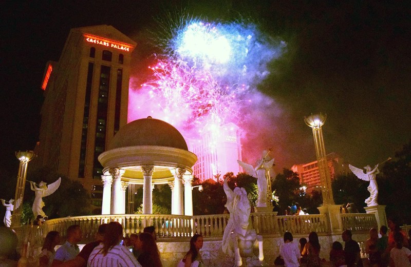 Fireworks by Grucci will launch its show from the rooftops of eight Las Vegas Strip resorts at midnight. It will be a 10-minute spectacle. Here on the Las Vegas Strip in front of the Caesars Palace. (Frank Alejandre / The Nevadan)