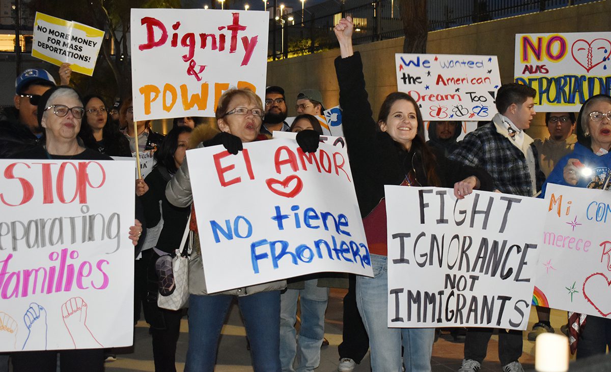 Activistas y defensores de los inmigrantes se manifestaron en Las Vegas contra órdenes ejecutivas de Trump dirigidas a la inmigración indocumentada.