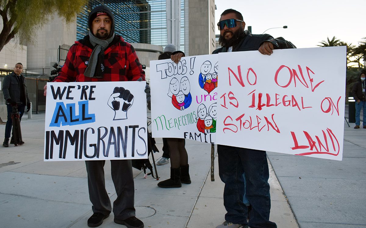 Los organizadores se reunieron frente al Tribunal Federal Lloyd D. George para mostrar apoyo y brindar recursos a los indocumentados del sur de Nevada.