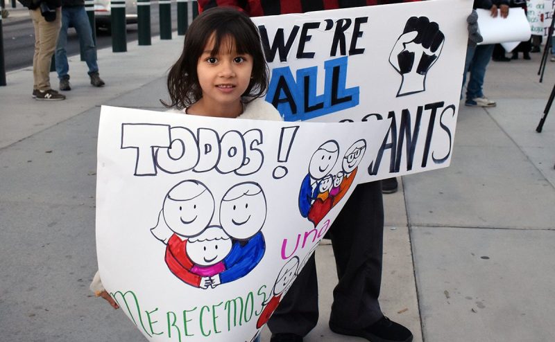 Los manifestantes portaron pancartas con leyendas como “El amor no tiene frontera”, “No más dinero para deportaciones masivas”, “Dignidad y poder latino”, “Alto a la separación de familias”, “Hay que luchar contra la ignorancia, no contra los inmigrantes”, “Nosotros también queremos acceder al sueño americano” y “Todos merecemos una familia”.
