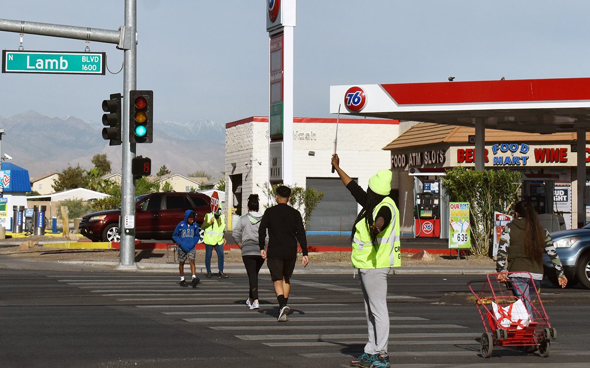 Los guardias de cruce trabajan para dar seguridad a los estudiantes y peatones. Si usted anda en busca de una chambita de tiempo parcial, acuda a las ferias de empleo. (Foto Frank Alejandre / The Nevadan / El Nevadense)