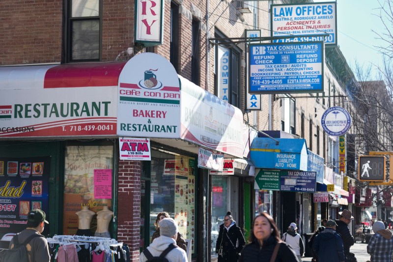 Signs in Spanish and English are displayed the Brooklyn borough of New York, Friday, Feb. 28, 2025. (AP Photo/Seth Wenig)