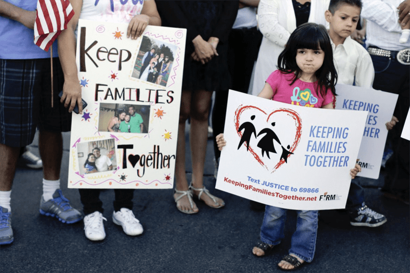 Mia Williams, de cuatro años, sostiene un cartel durante una vigilia de inmigración frente a las oficinas del Servicio de Inmigración y Control de Aduanas, el miércoles 10 de abril de 2013, en Las Vegas. La vigilia se llevó a cabo para honrar a todos los que han sido detenidos o deportados por ICE. (Foto Julie Jacobson /AP)