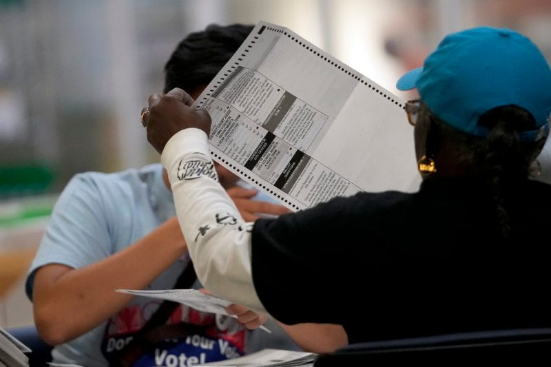 FILE – Election workers process ballots at the Clark County Election Department, Nov. 10, 2022, in Las Vegas. (AP Photo/Gregory Bull)